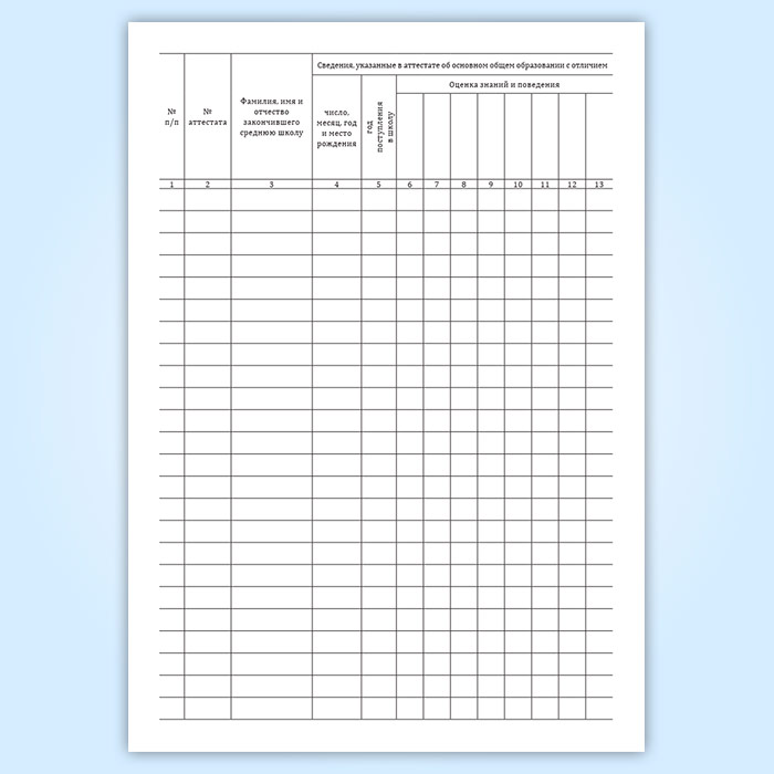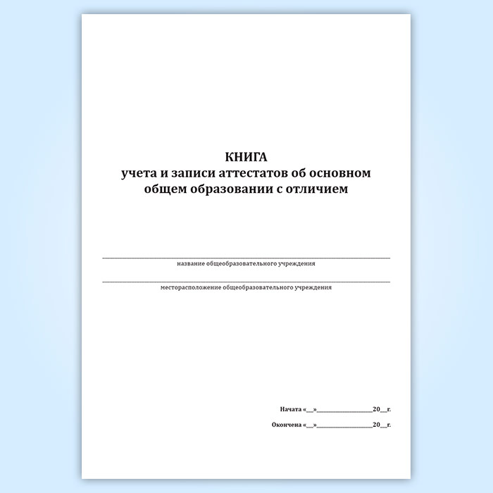 Книга учета и записи аттестатов об основном общем образовании с отличием