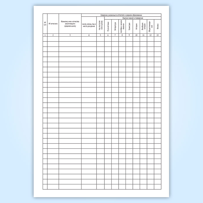 См. также Книгу учета и записи выданных аттестатов о среднем (полном) образовании, золотых и серебряных медалей
