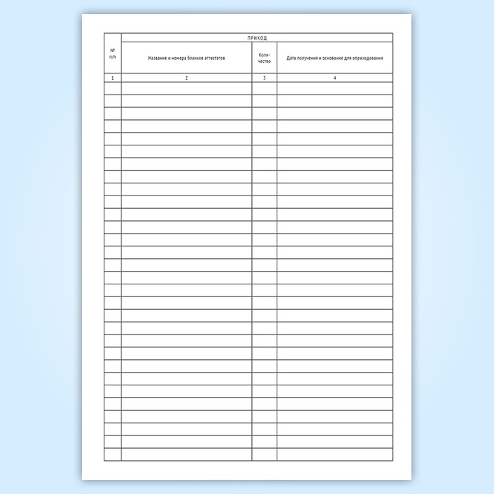 Записи в Книге производятся в хронологическом порядке при совершении каждой операции прихода-расхода лицом, ответственным за получение, хранение, учет и выдачу бланков аттестатов.
