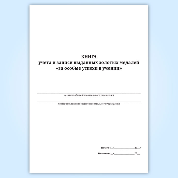 В книге учета и записи выданных золотых медалей "за особые успехи в учении " отмечаются выпускники, награжденные похвальными грамотами За особые успехи в изучении отдельных предметов, а также золотыми медалями "За особые успехи в учении", расписываются в их получении и проставляют дату.