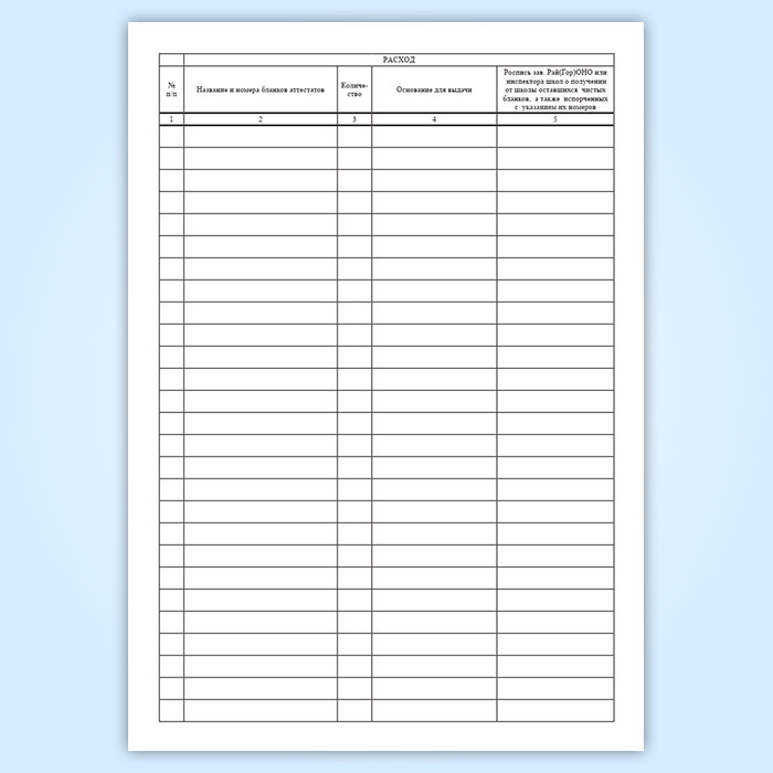 - Роспись зав. Рай(Гор)ОНО или инспектора школ о получении от школы оставшихся чистых бланков, а также испорченных с указанием их номеров