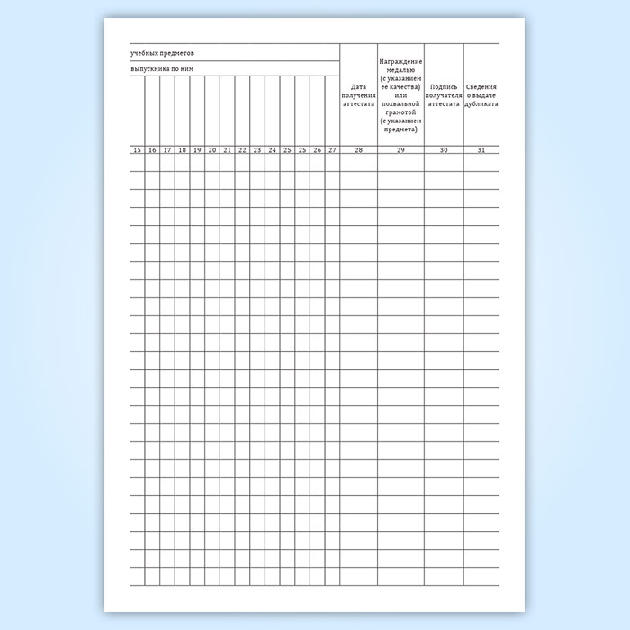 29. Награждение медалью (с указанием ее качества) или похвальной грамотой (с указанием предмета)