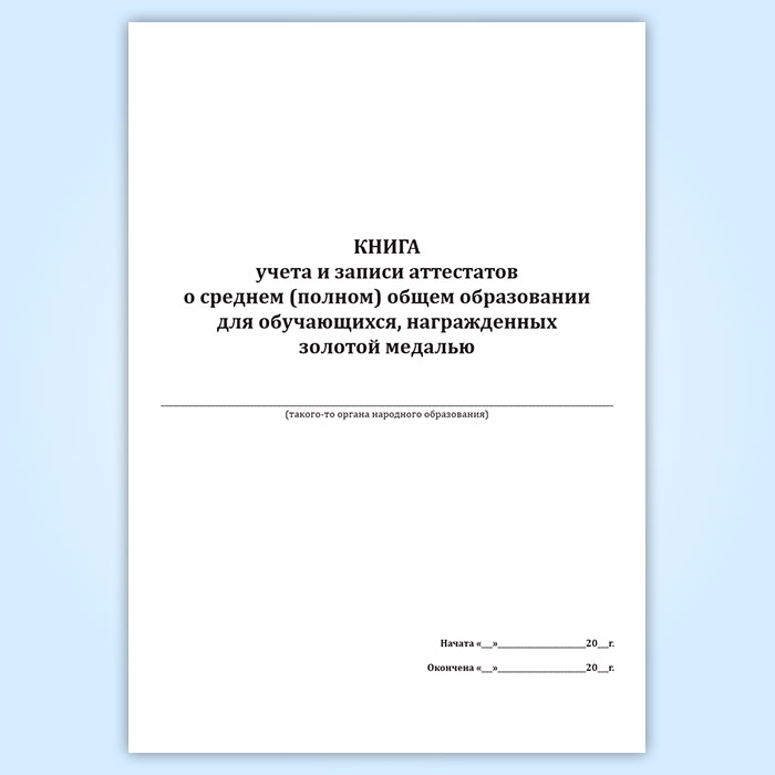 Книга учета и записи аттестатов о среднем (полном) общем образовании для обучающихся, награжденных золотой медалью