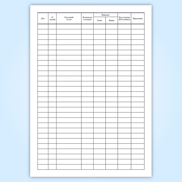 См. также: Журнал осмотра детей на чесотку и педикулез