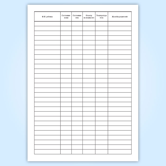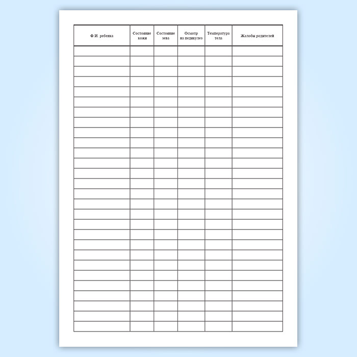 Данный журнал используют для внесения данных при медосмотре ребенка в учреждениях.