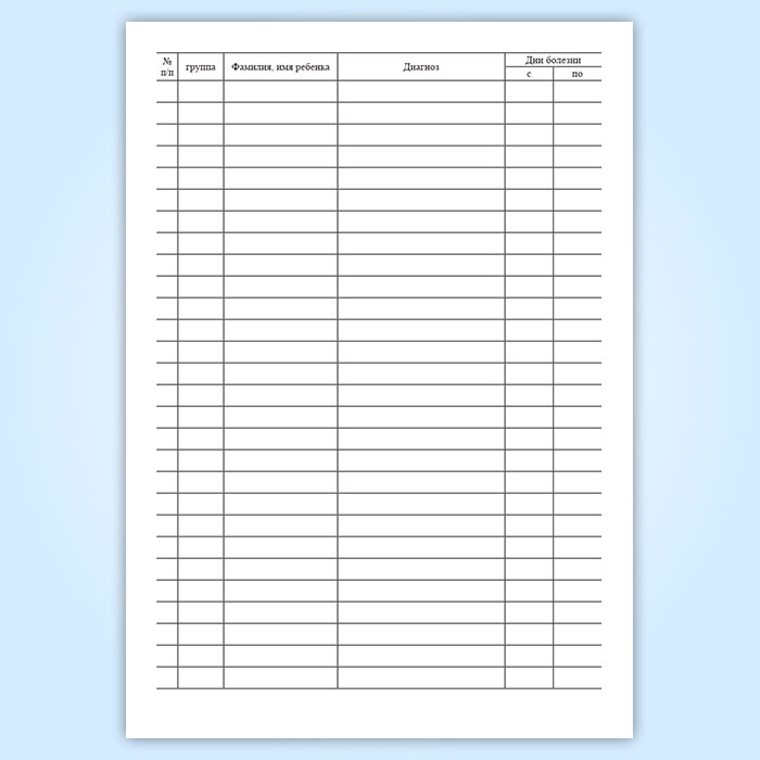 Для учета заболеваемости в детском дошкольном учреждении ведут журнал учета заболеваемости. Записи ведутся в хронологическом порядке, в порядке поступления данных о заболевании и заполняется медицинской сестрой.