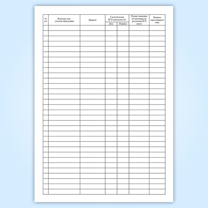 Журнал ознакомления с результатами Единого государственного экзамена выпускников 11 (12) классов