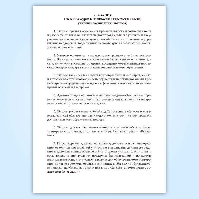 5. Журнал рассчитан на учебный год. Заполнение в нём соответствующих записей обязательно для каждого воспитателя, учителя, педагога дополнительного образования, тьютора.