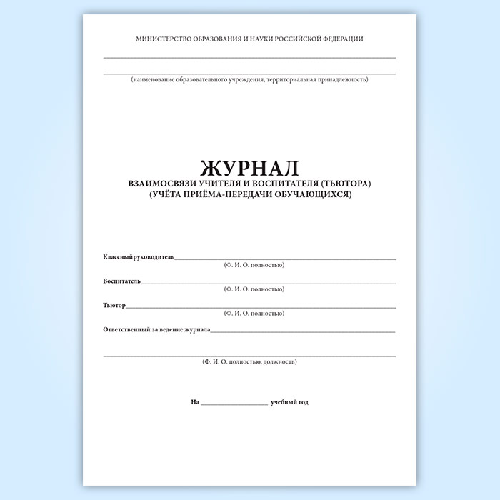 Журнал взаимосвязи учителя и воспитателя (тьютора) (учета-передачи учащихся)