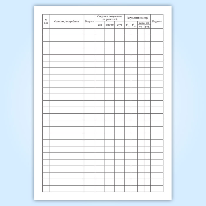 Журнал приема детей в группах раннего возраста (форма № 127)