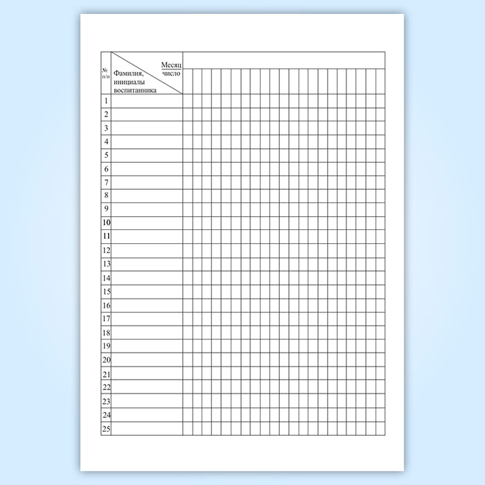 Журнал посещаемости воспитанников отряда летнего оздоровительного лагеря имеет графы: