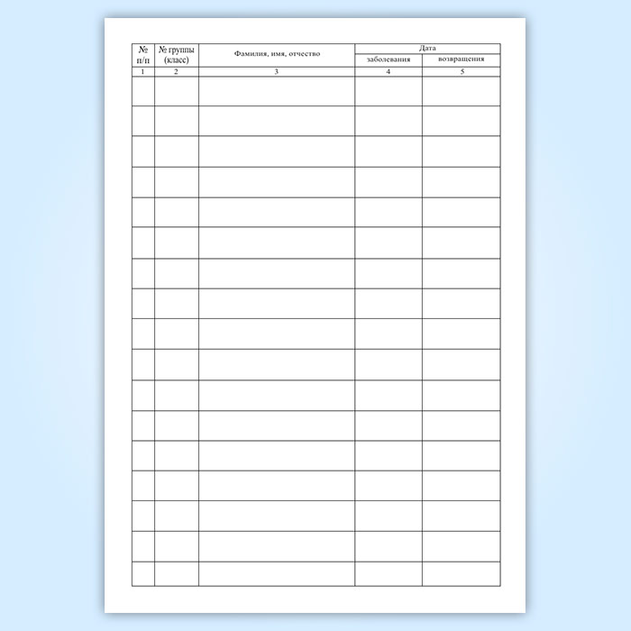 Данная форма журнала ведется во всех учебных учреждениях для учета соматических заоболеваний у детей.