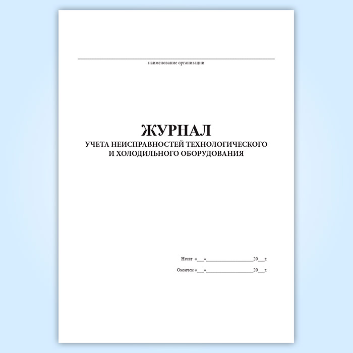 Журнал учета неисправностей технологического и холодильного оборудования