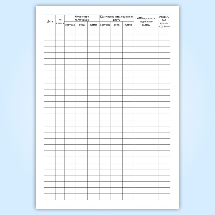Учет и контроль количества питающихся производится ответственными лицами с занесением данных в журнал.