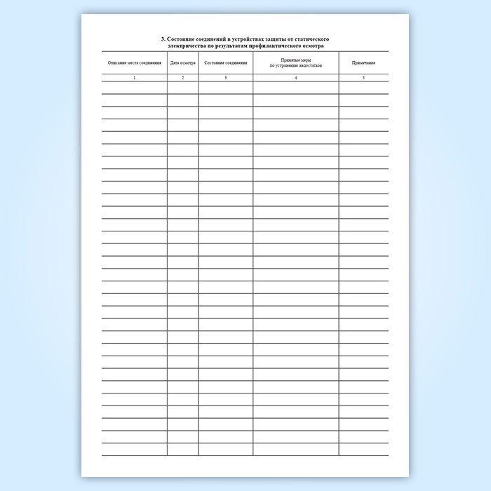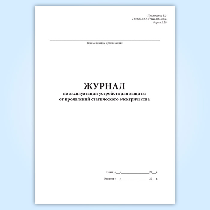 Журнал по эксплуатации устройств для защиты от проявлений статического электричества (форма Б.29)