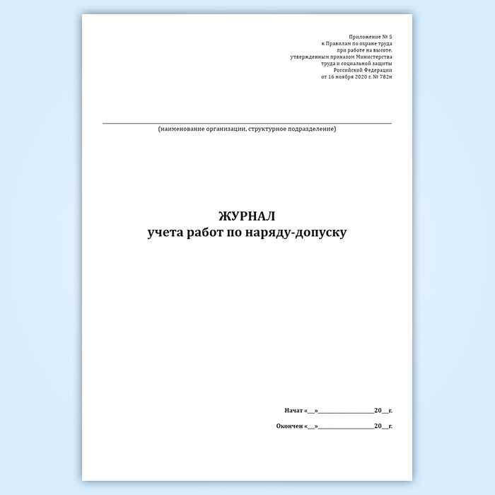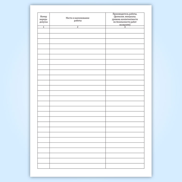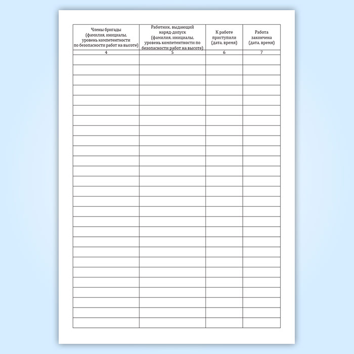 Форма журнала учета работ по наряду-допуску соответствует Приложению N 5 к Правилам по охране труда при работе на высоте.