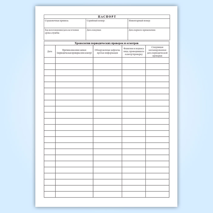 Журнал осмотра страховочных систем