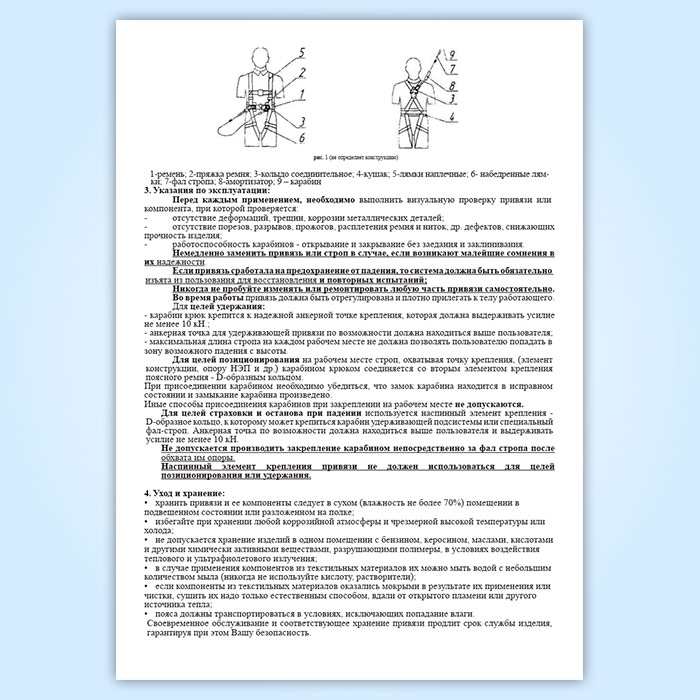 К работе с использованием привязей допускаются только лица, прошедшие специальную подготовку для работы на высоте и ознакомленные с требованиями данного паспорта.