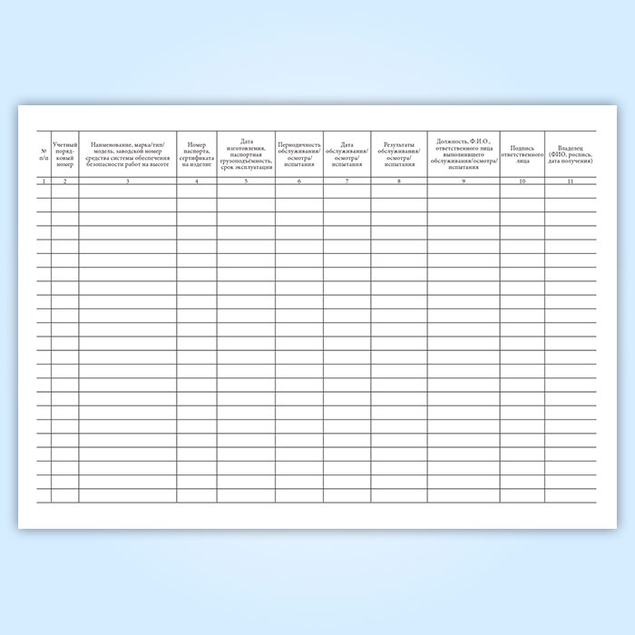 Контроль за учетом, обслуживанием и периодическим осмотром систем обеспечения безопасности работ на высоте ведут с помощью специального журнала.