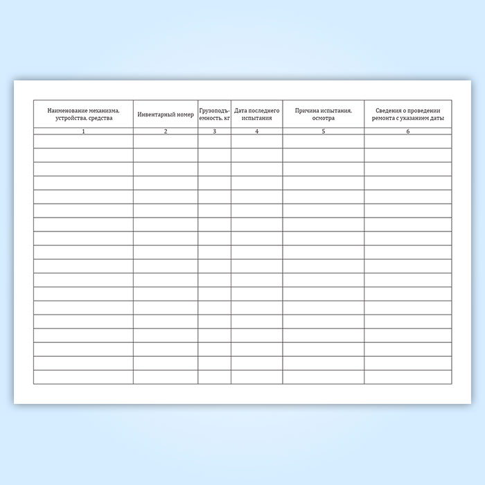 Графы журнала учета и осмотра такелажных средств, механизмов и приспособлений: