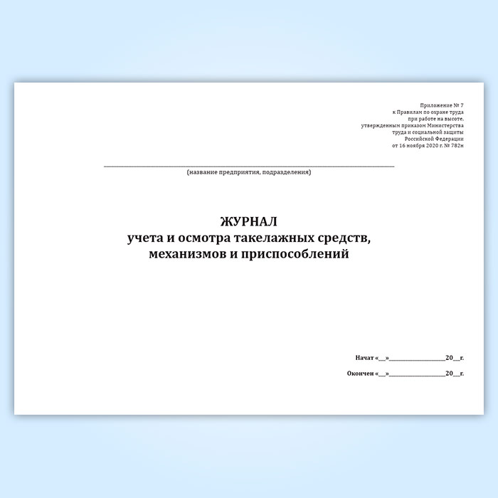 Журнал учета и осмотра такелажных средств, механизмов и приспособлений (Приказ Минтруда России от 16.11.2020 N 782н)