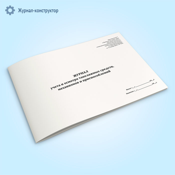 Для учета и осмотра такелажных средств, механизмов и приспособлений применяется журнал.