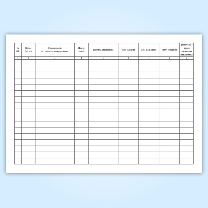 Эксплуатационный документ, в котором осуществляется регистрация заявок на вывод оборудования из работы от цехов (участков) с указанием наименования оборудования, причины и времени вывода его из работы (подачи заявки), а также объема теплопотребления отключаемого оборудования.