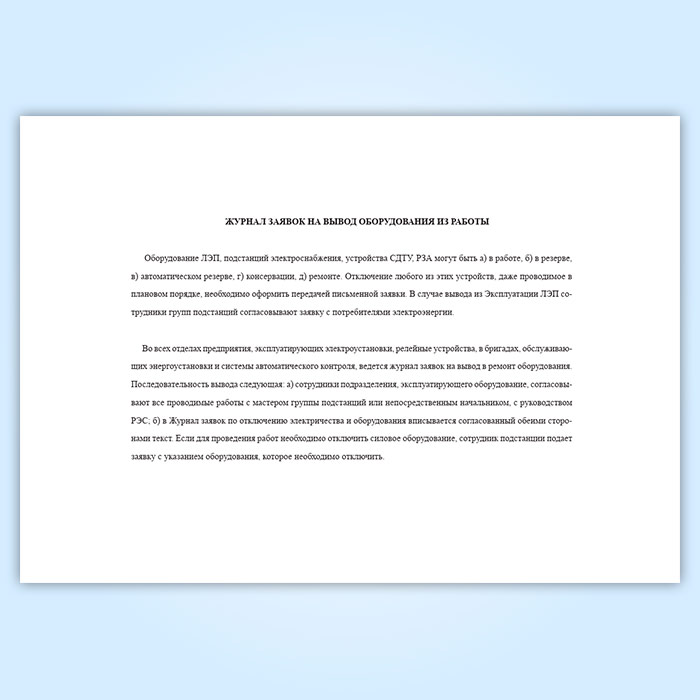 Журнал заявок на вывод оборудования из работы