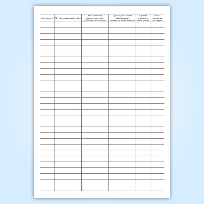 Журнал учета выдачи наряда-допуска на производство огневых работ вне электроустановок