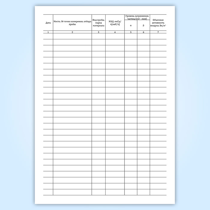 Журнал радиационного контроля имеет графы: