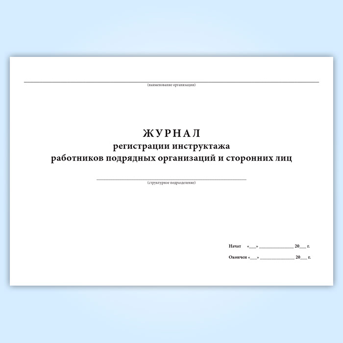 Все сотрудники сторонних организаций, которых предприятия привлекают к выполнению работ, должны проходить инструктаж перед ее началом. Дату прохождения инструктажа регистрируют в специальном журнале.
