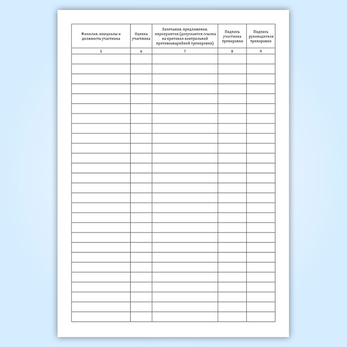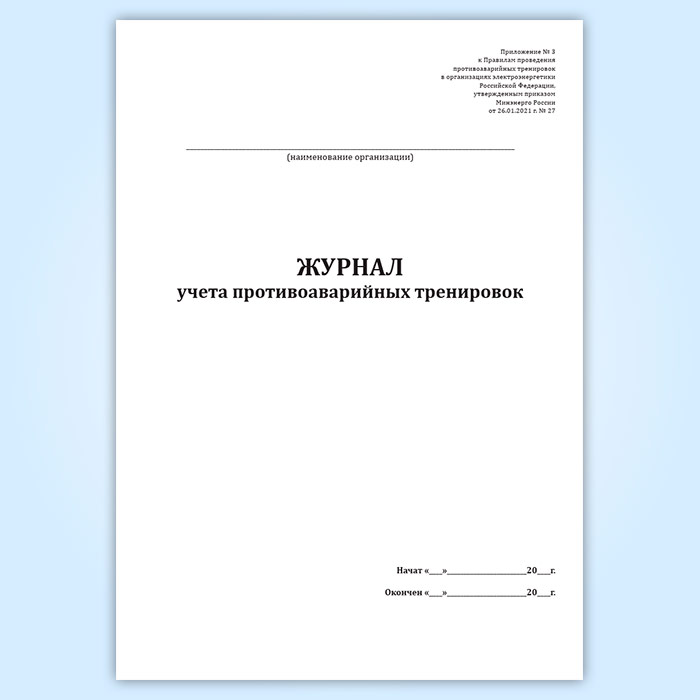 Форма журнала соответствует Приложению 3 к Приказу Минэнерго России от 26.01.2021 N 27 " Об утверждении Правил проведения противоаварийных тренировок в организациях электроэнергетики Российской Федерации"