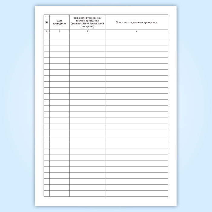 При заполнении журнала учета тренировок в графе "Вид и метод тренировки, причина проведения (для неплановой контрольной тренировки)" должно содержаться указание на контрольную тренировку.