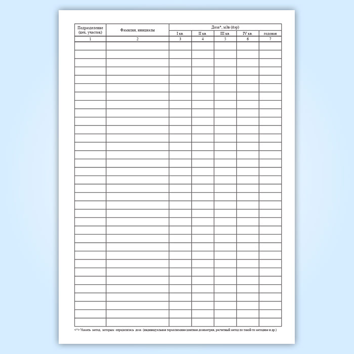 См. также журнал учета индивидуальных доз облучения работников, графы которого идентичны.