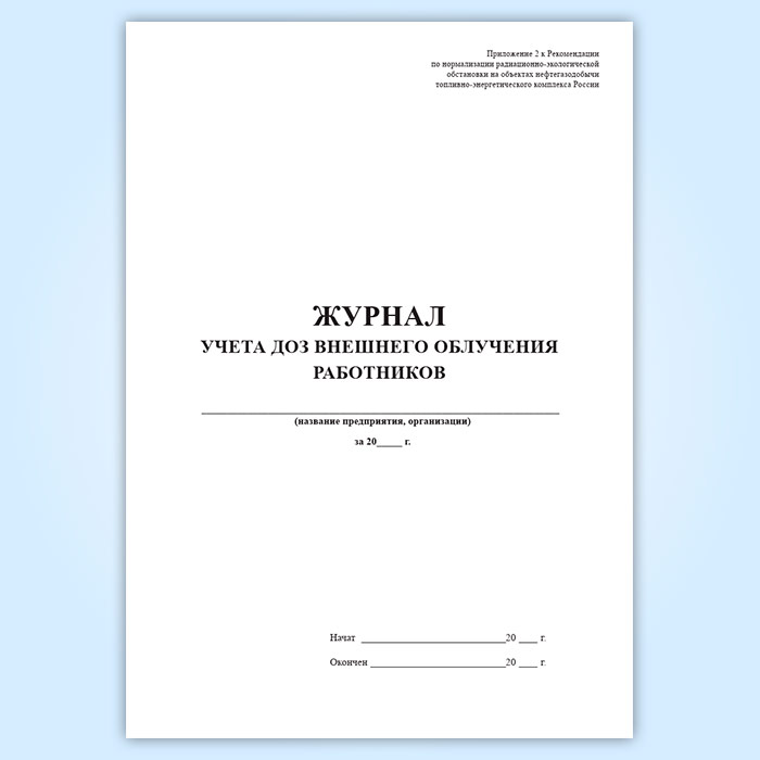 Форма журнала учета доз внешнего облучения работников соответствует Приложению 2 к "Рекомендации по нормализации радиационно-экологической обстановки на объектах нефтегазодобычи топливно-энергетического комплекса России" утв. Минтопэнерго России 20.11.96.