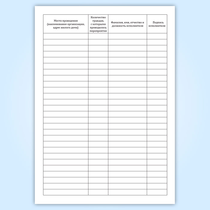 Журнал учета агитационно-разъяснительных мероприятий среди населения, проводимых сотрудниками подразделений охраны содержит графы для заполнения: