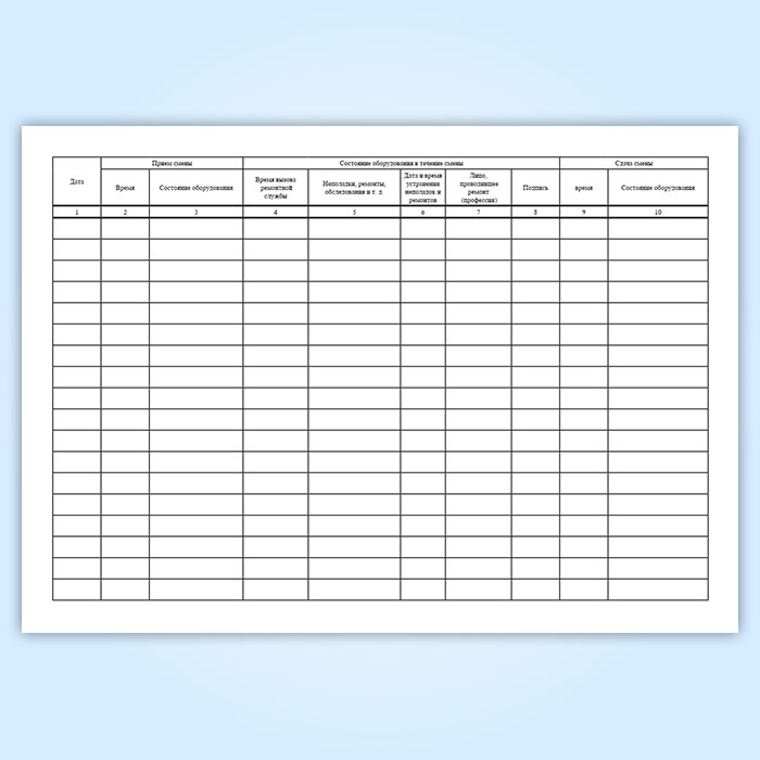 Сменный журнал технического состояния оборудования