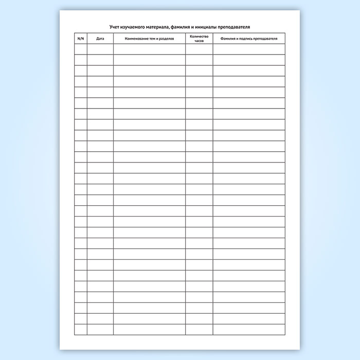 Учет изучаемого материала, фамилия и инициалы преподавателя