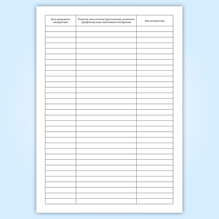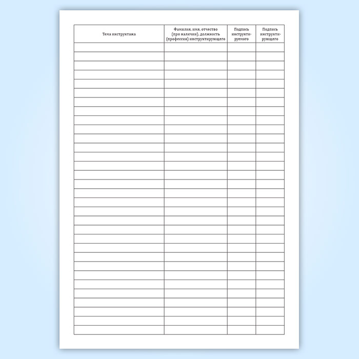 Журнал регистрации проведения производственных инструктажей имеет графы: