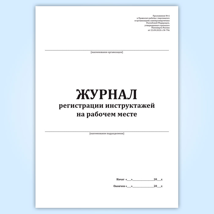 Форма журнала соответствует Приложению N 6 к Правилам работы с персоналом в организациях электроэнергетики Российской Федерации, утвержденным приказом Минэнерго России от 22.09.2020 г. N 796