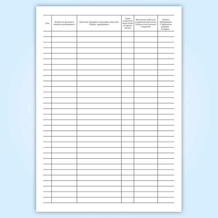 Результаты проверок специализированного складского помещения (места хранения) с указанием выявленных недостатков и предложений по их устранению оформляются актом, а результаты частных проверок должны записываться в журнал.