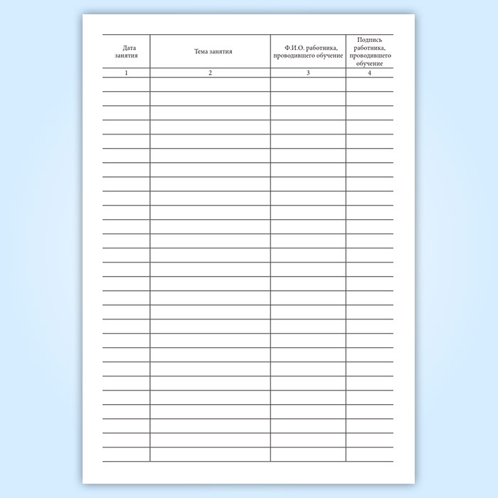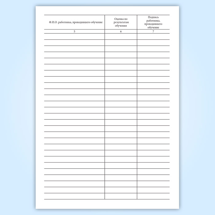 Графы данного журнала отличаются от граф журнала учета инструктажей по оказанию первой доврачебной помощи при несчастных случаях на производстве и журнала регистрации обучения по охране труда и оказанию первой помощи пострадавшим на производстве