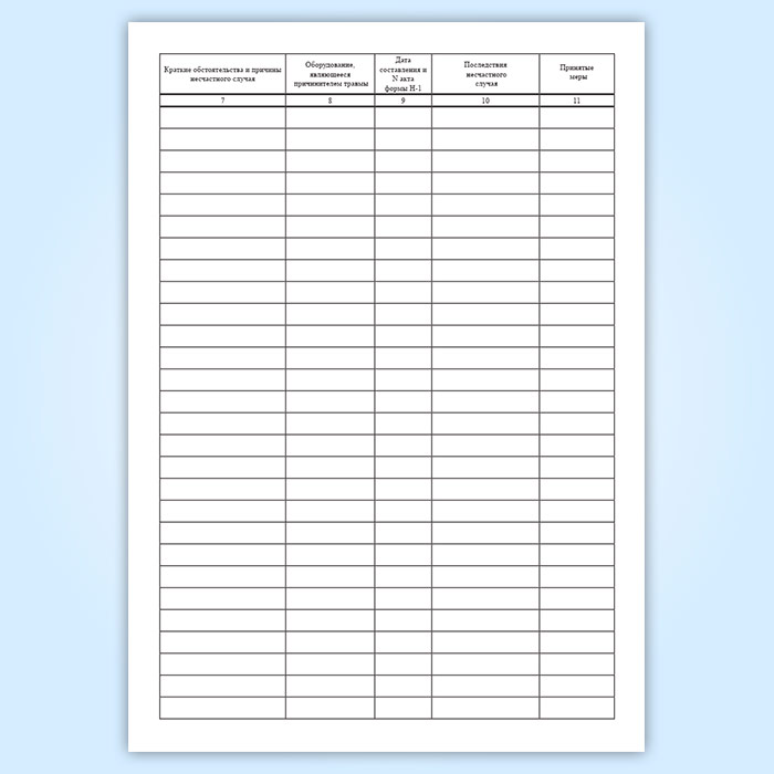 Все несчастные случаи, оформленные актом формы Н-1, регистрируются на предприятии в журнале. Форма журнала регистрации несчастных случаев на производстве, на торговых складах, базах и холодильниках соответствует Приложению 15 к Правилам охраны труда на торговых складах, базах и холодильниках.