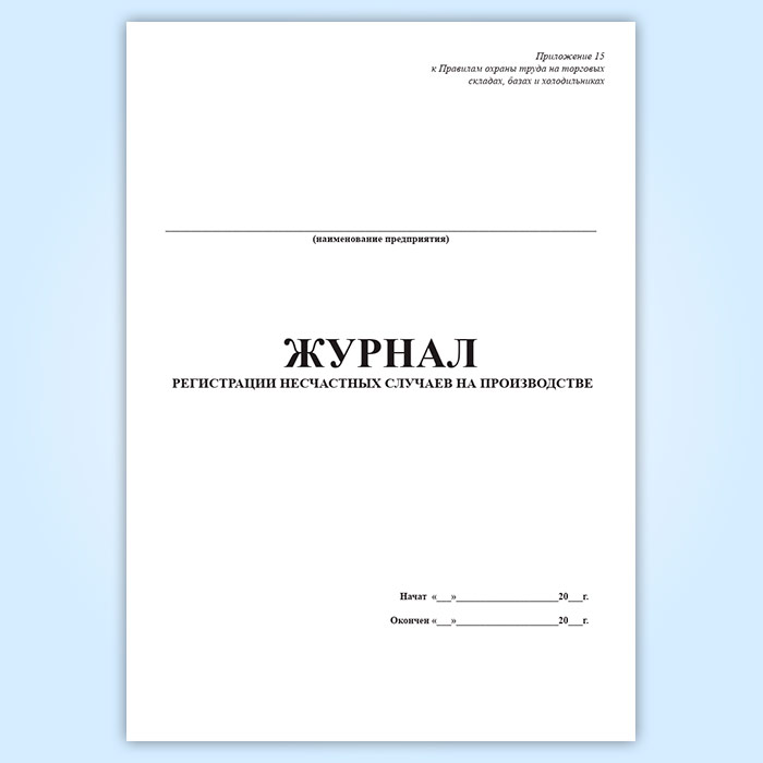 Журнал регистрации несчастных случаев на производстве, на торговых складах, базах и холодильниках