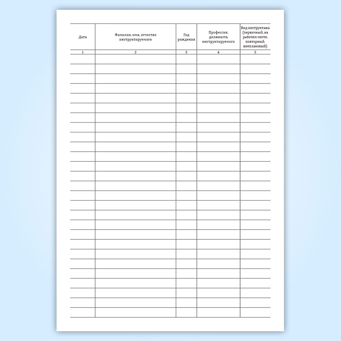 См. также журнал регистрации инструктажа на рабочем месте с другими графами.