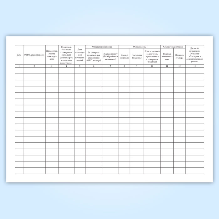 Журнал стажировки персонала на рабочем месте имеет графы: