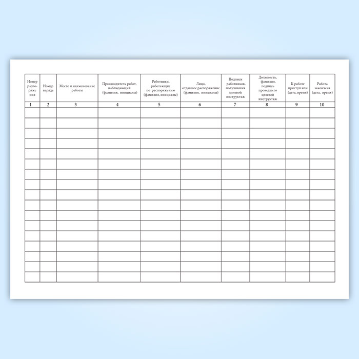 При работах по распоряжению должны быть оформлены все графы журнала, за исключением графы 2 (номер наряда).