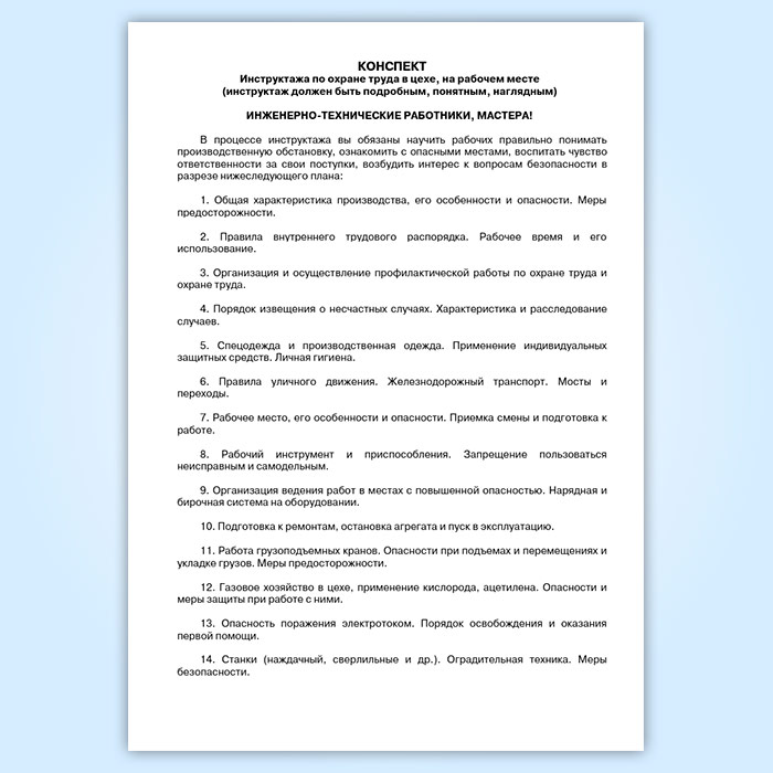 Конспект инструктажа по охране труда в цехе, на рабочем месте (инструктаж должен быть подробным, понятным, наглядным)