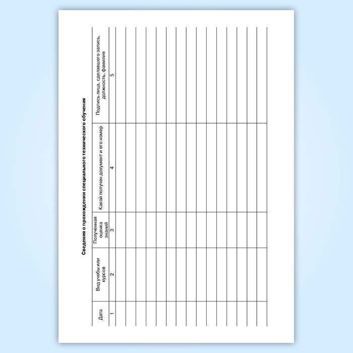 Сведения о прохождении специального технического обучения