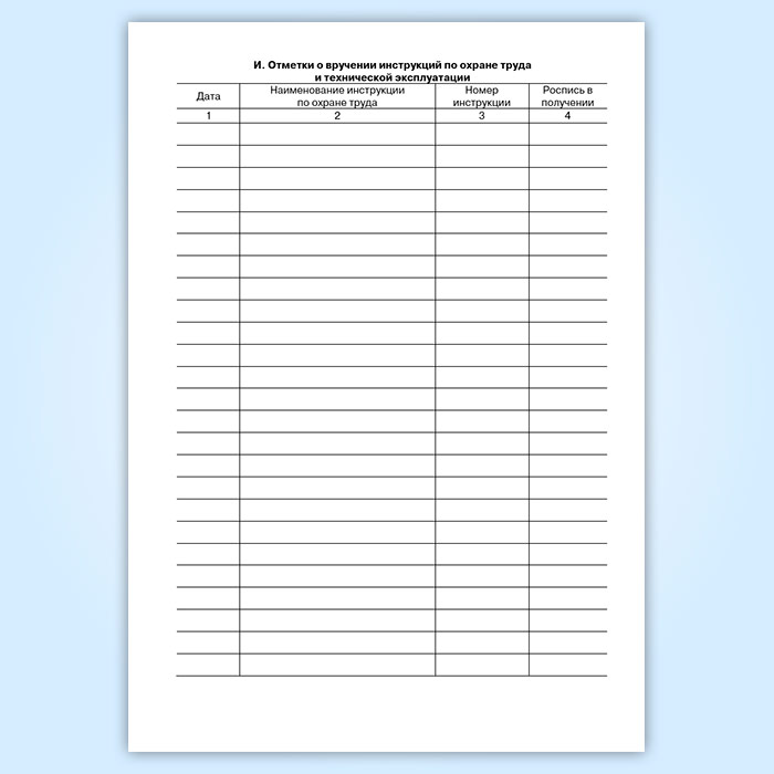 И. Отметки о вручении инструкций по охране труда и технической эксплуатации